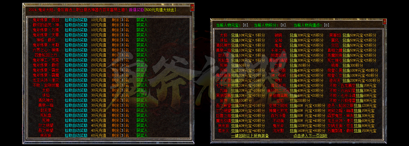 1:10000元宝 2积分点 1充值点,本服散人热土,土豪激情,平民消费